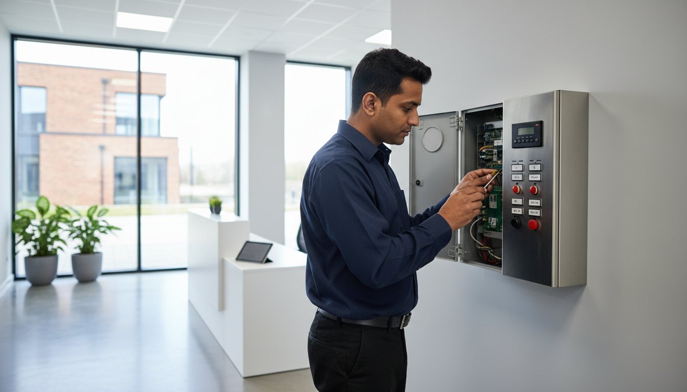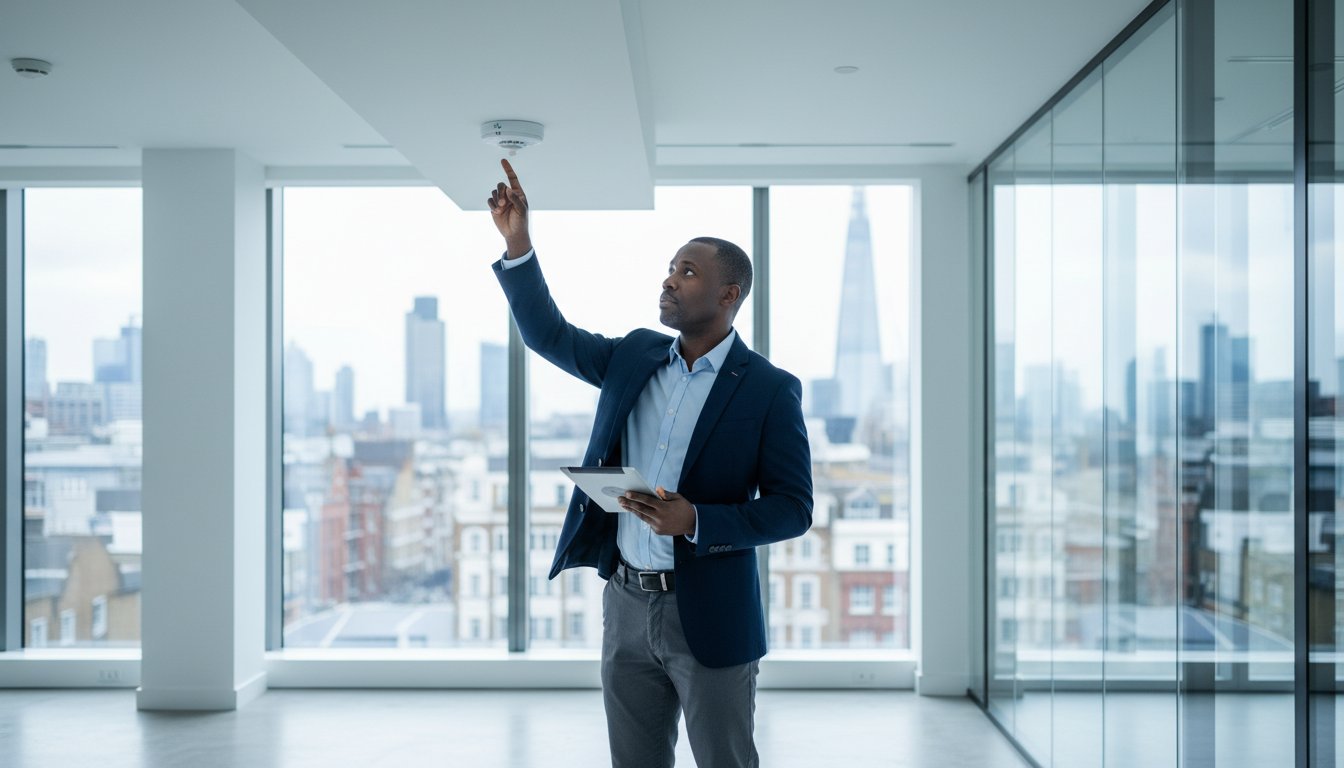 BS 5839-compliant fire alarm installation for Studio FIX London by Quartz Empire — ensuring safety, early detection, and seamless design integration.